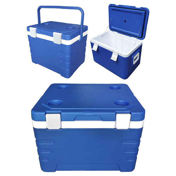 Den blåste isolerte kjøleboksen er produsert ved hjelp av en ettrinns blåseprosess, med kroppen støpt av HDPE-materiale, og har en integrert struktur som er sterk og holdbar.